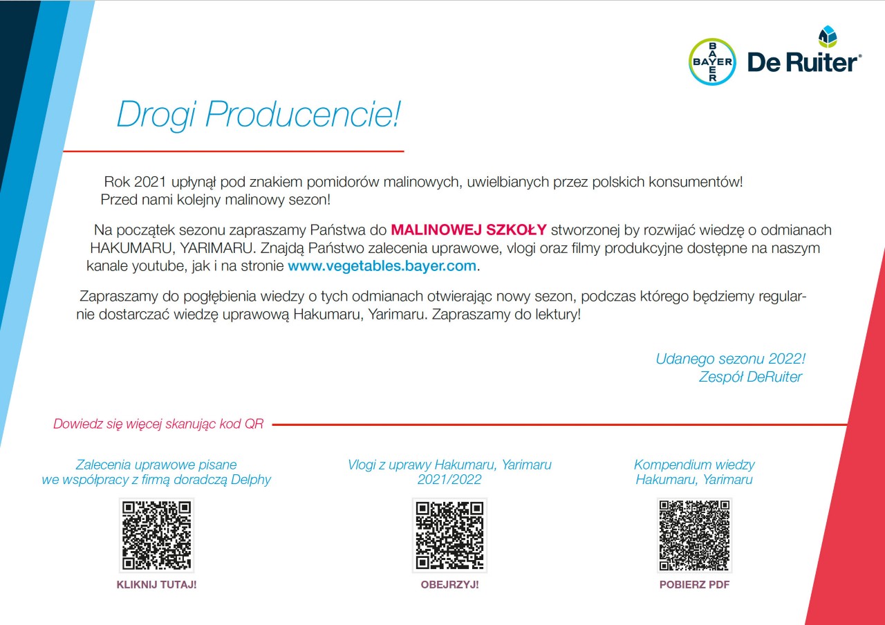 Hodowla odmian warzyw jest sztuką, który wymaga dużo nauki! W De Ruiter chętnie dzielimy się naszą wiedzą, aby pomóc Ci z powodzeniem uprawiać odmiany Hakumaru & Yarimaru. Na tej stronie znajdziesz zalecenia uprawowe dla tych odmian pisane w 2021 r. we współpracy z firmą Delphy.