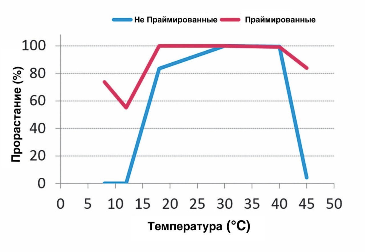 Праймирование – это метод повышения скорости и равномерности всхожести семян. В семена при контролируемых условиях добавляют воду, после чего им дают развиться до определенного состояния, а затем высушивают. То есть во время проведения процедуры праймирования начинается процесс прорастания до момента появления зародышевого корня.