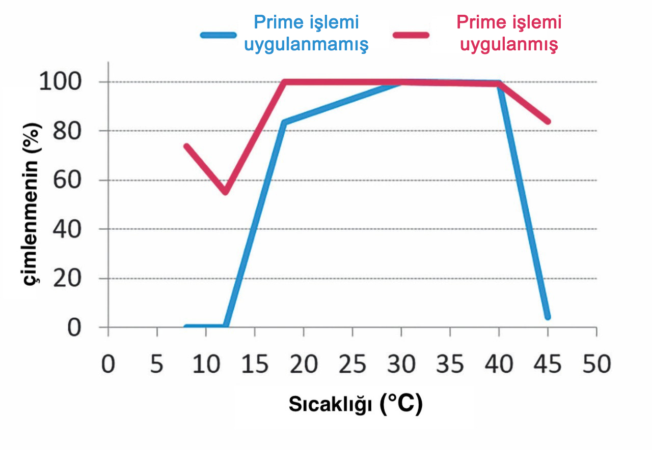 Priming işlemi, çimlenmenin hızını ve üniformitesini geliştirmek için kullanılan bir yöntemdir. Tohumlara kontrollü bir şekilde su eklenir. Ardından, tekrar kuruyana kadar tohumların belli bir süre boyunca gelişmesi beklenir. Priming işlemi sırasında, kökçük oluşmasına izin vermeksizin çimlenme süreci başlar.